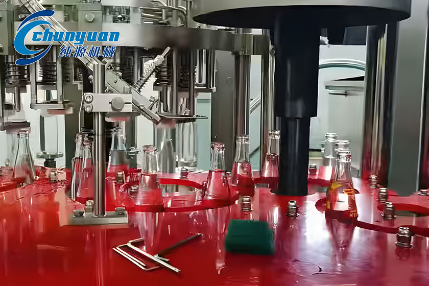 現如今,隨著國內熱灌裝飲料市場的不斷擴大,純源飲料機械根據對市場的分析,結合了國內外的優越技術,再結合純源機械多年以來的研發經驗,研發制造而成的全自動洗瓶、灌裝、封蓋三合一熱灌裝飲料機械。主要熱灌裝設備有:果汁果肉灌裝機械、茶飲料灌裝機、果蔬汁飲料機械、酵素飲料灌裝機、乳制品灌裝設備、運動能量飲料灌裝設備等。其性能穩定,價格優,免費為中小型熱灌裝企業提供整套熱灌裝生產線的售前和售后服務。